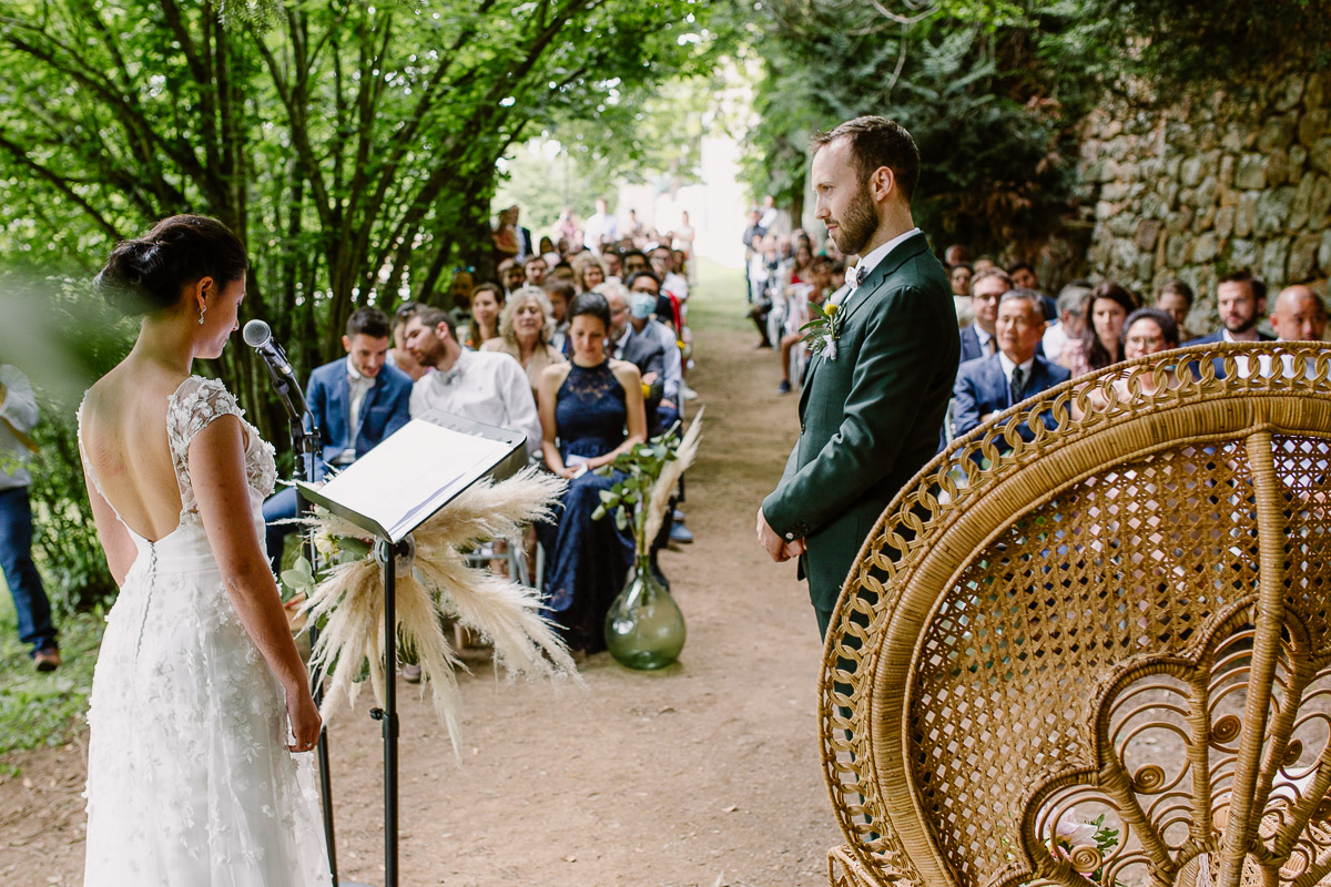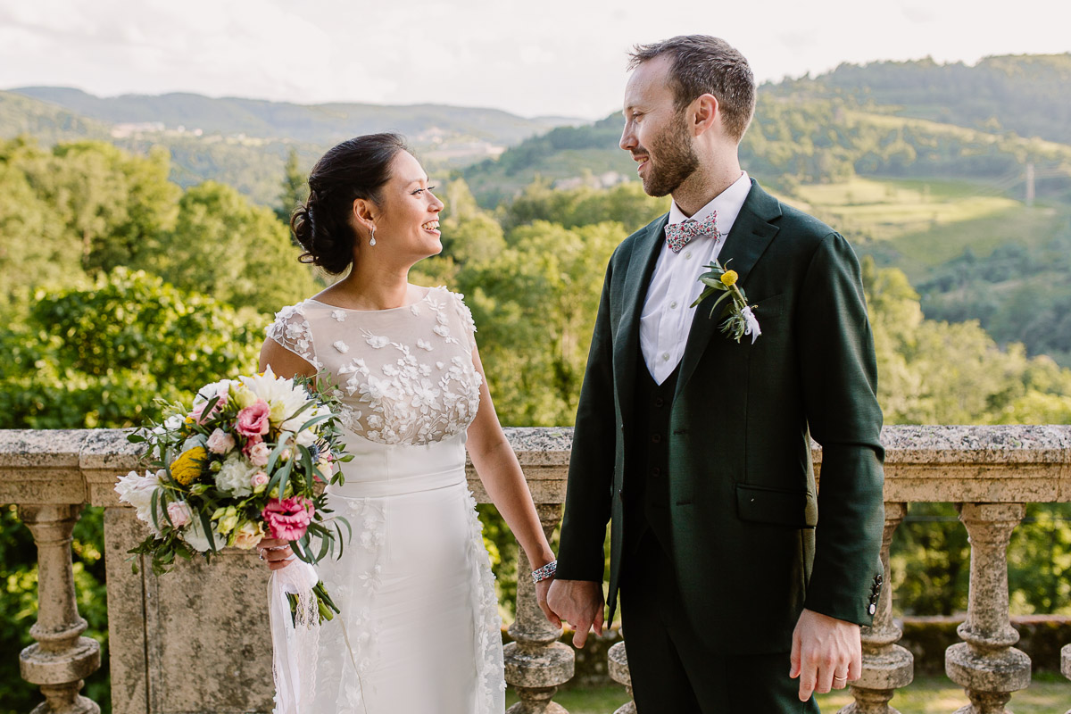Habitant Lyon, Marie et Yann avaient sélectionné un lieu magique en Ardèche pour célébrer leur amour en compagnie de leurs proches : le château d’Urbilhac, situé sur les hauteurs du village de Lamastre et niché au milieu des collines. Un superbe écrin pour leur union !