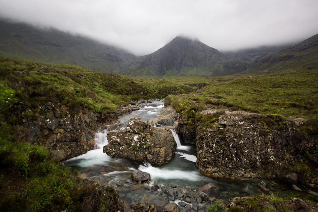 Paysages de landes infinies, de lochs et de montagnes sculptées par le temps, vallées étroites dominées par des géants de roche d’où tombent avec fracas des cascades…