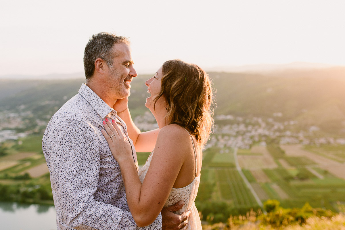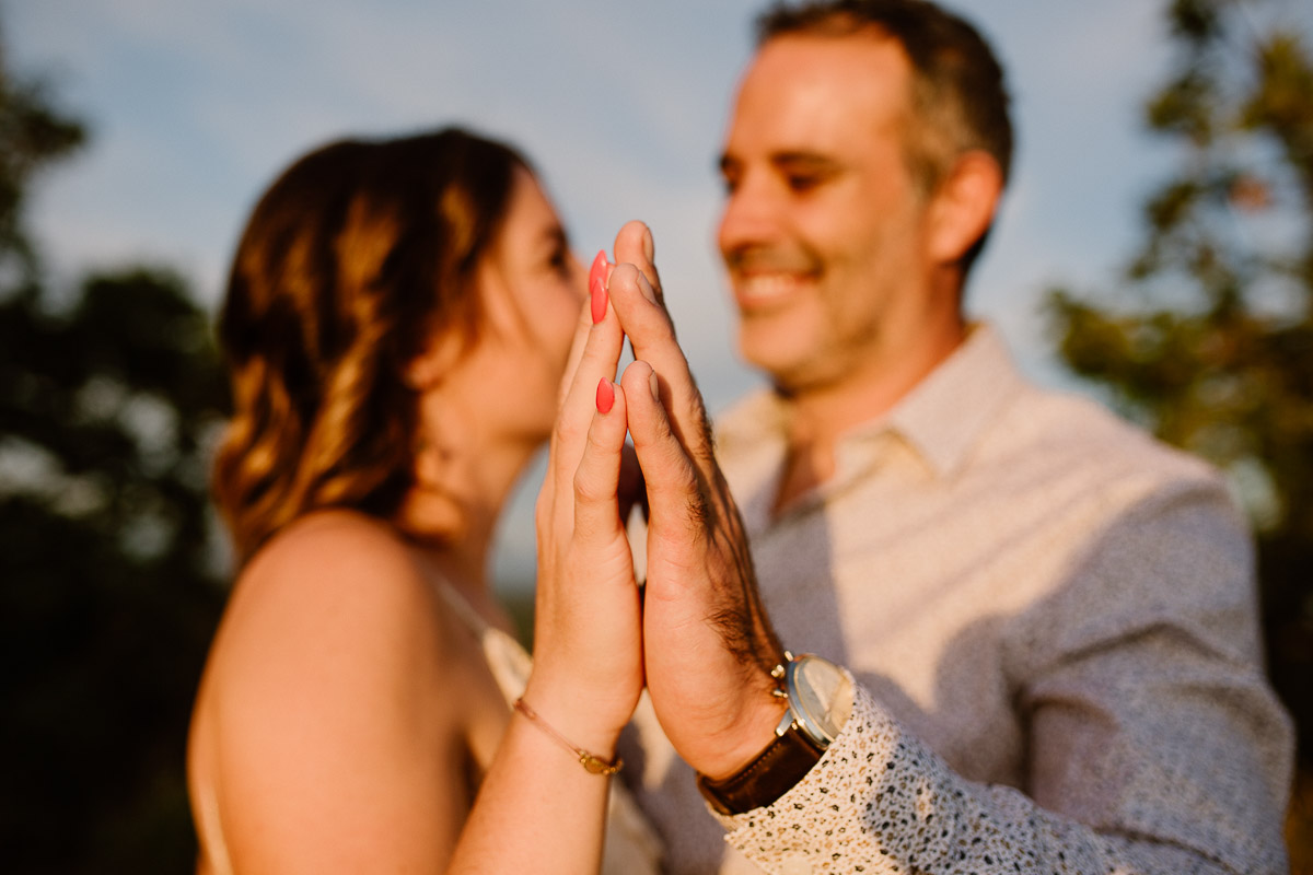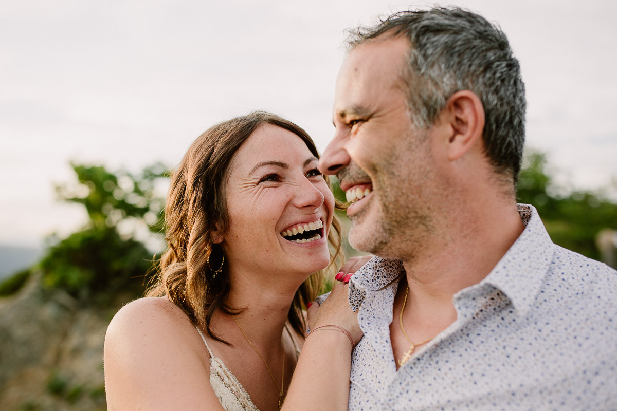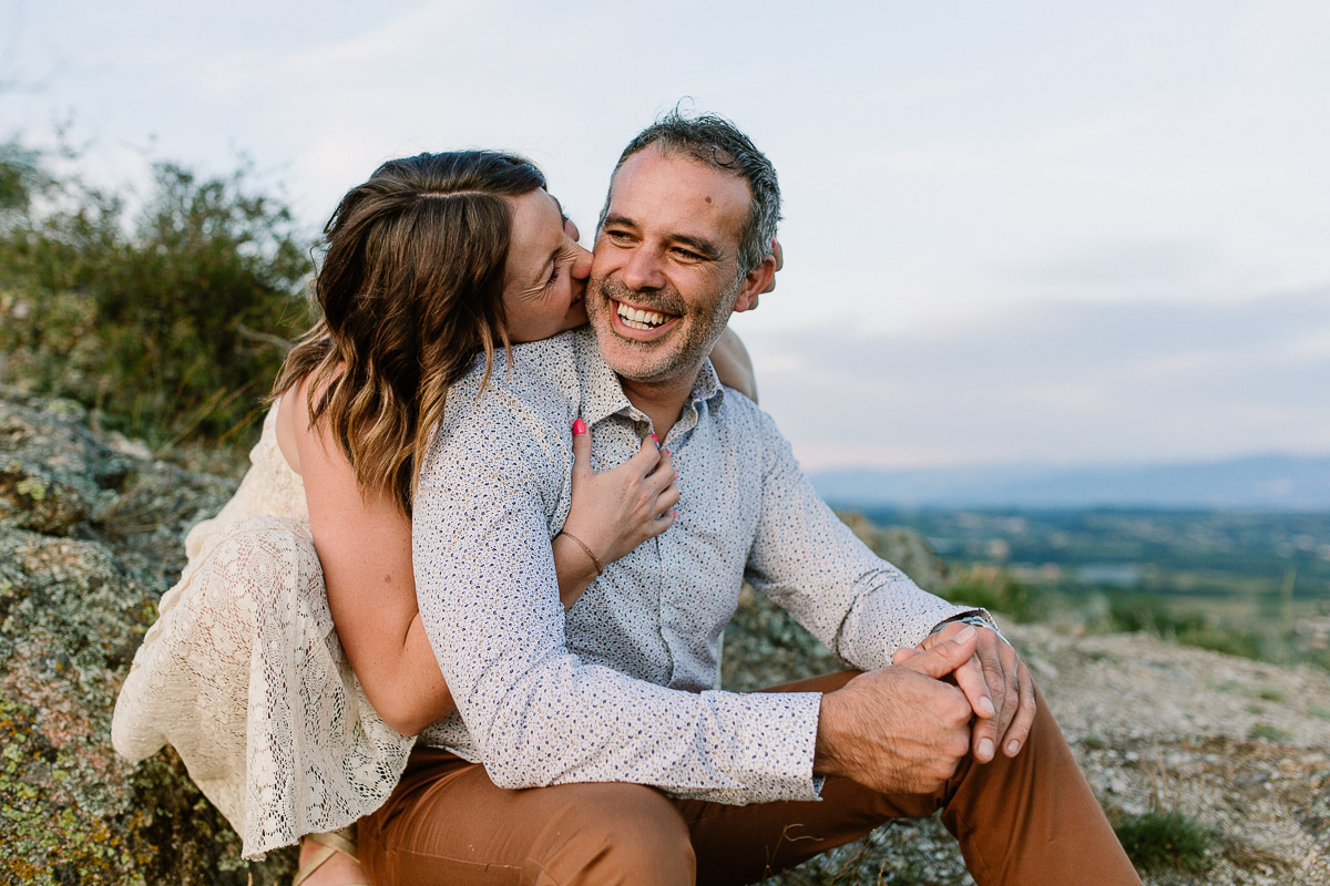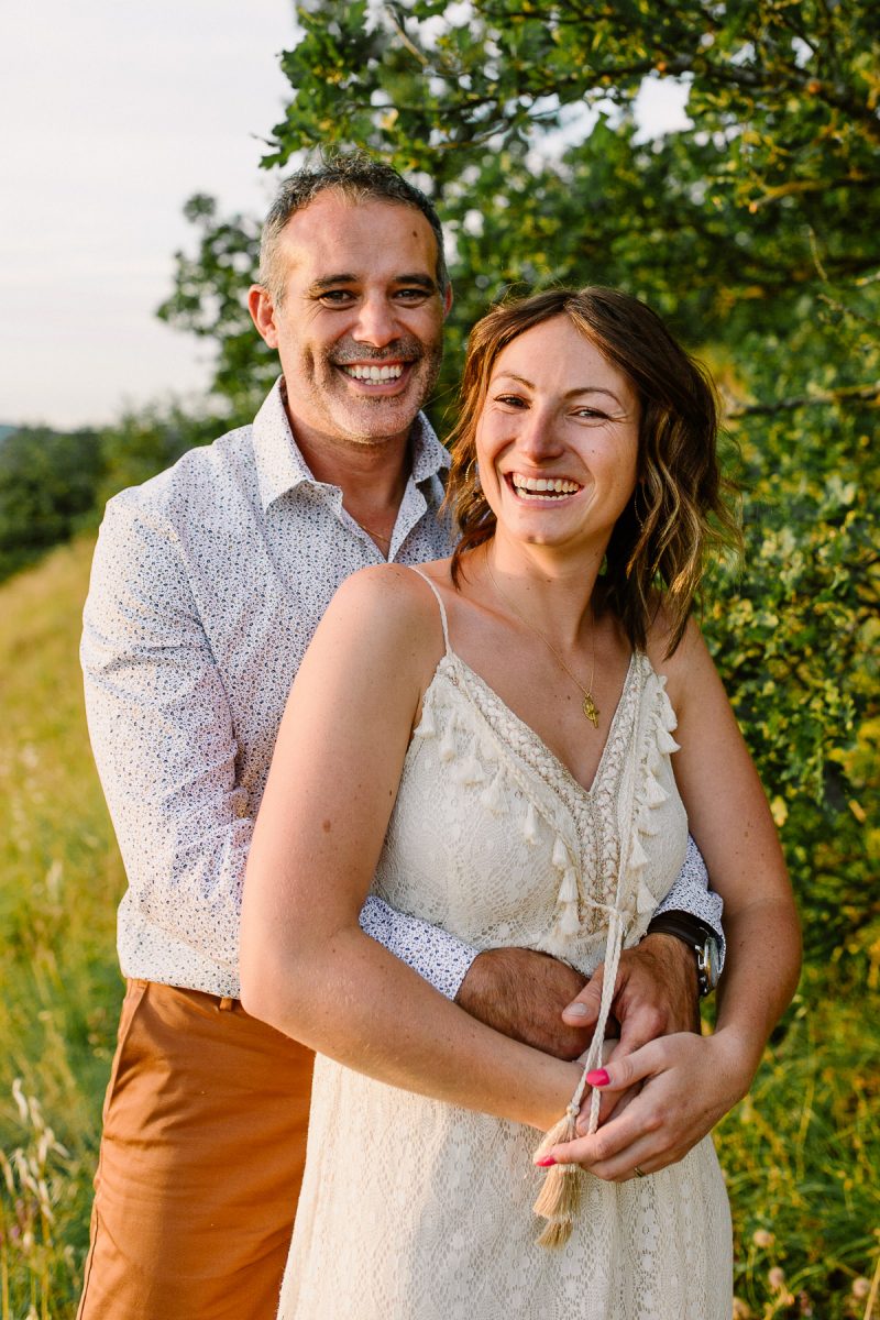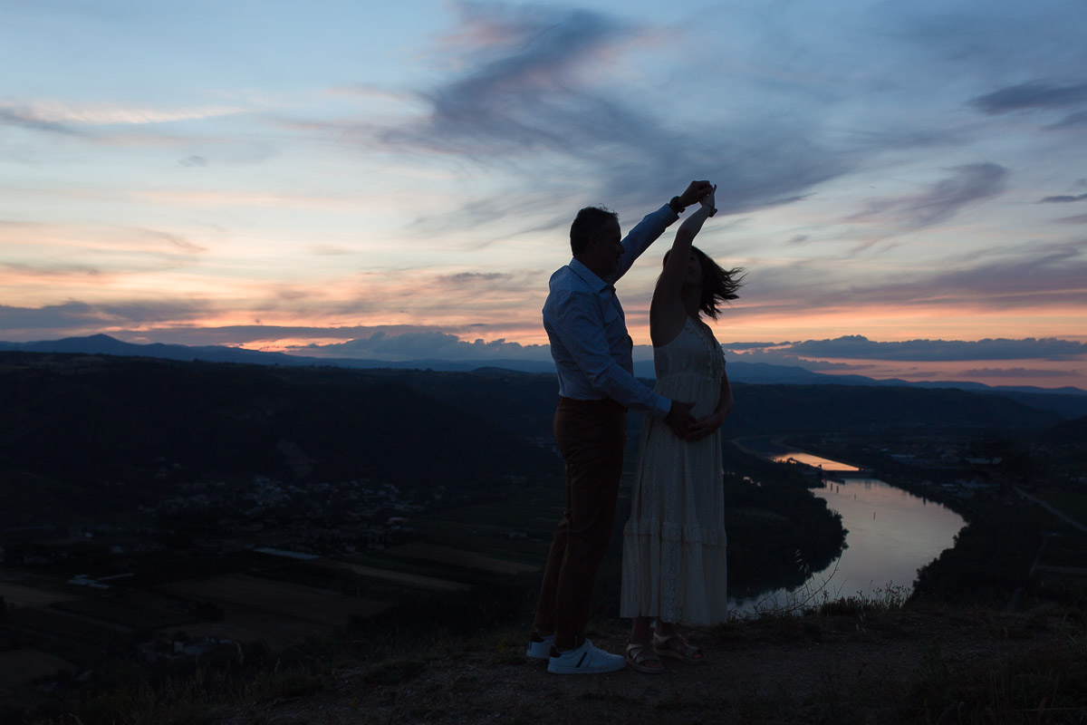 Avec ces deux amoureux, nous nous sommes donc donné rendez-vous entre Drôme et Ardèche, dans un très beau site naturel dominant le Rhône et les vignobles de l’Hermitage. La météo nous a gâtés, avec une très belle lumière dorée juste avant le coucher du soleil !
